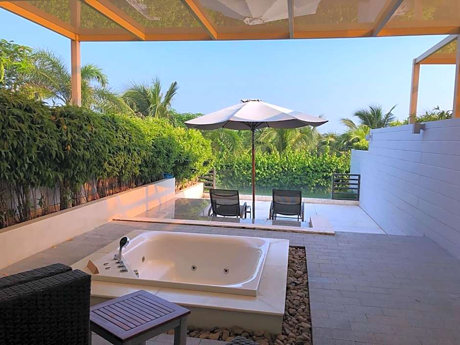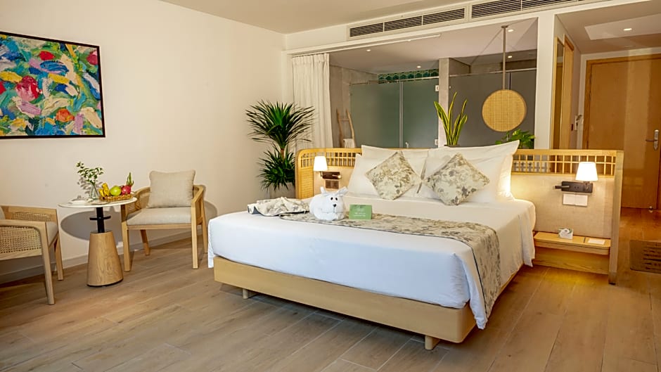 Rooms enjoy beautiful views of the pool from its balcony. Comes with a flat-screen TV and personal safe. Private bathrooms include shower facilities and free toiletries.